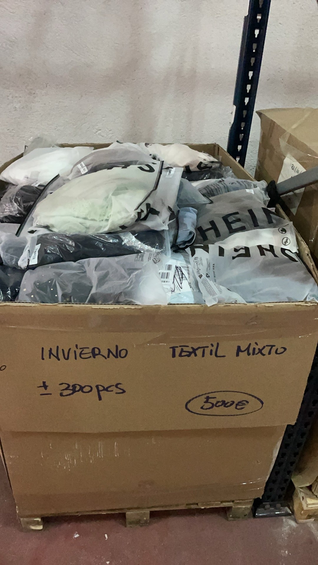 PALET DE TEXTIL MIXT,HAY MAS O MENOS 300PCS,SON 500+21%IVA+60TRANSPORTE=665